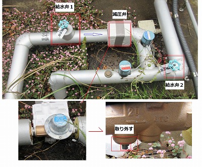 清掃後は.給水弁1.給水弁2のバルブを開けることを忘れない事